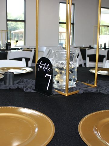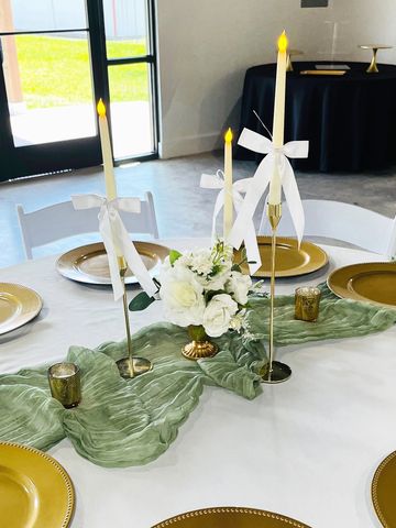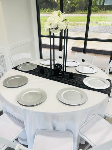 A one time all inclusive fee for the decor closet. Includes all decor, linen, and runners.. May also rent by the piece. Below are example of table setups and individual items available.